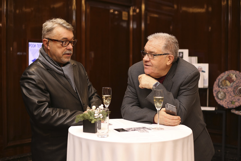 Вечер начался с небольшого фуршета, где гости могли ознакомиться с лотами «тихого» аукциона и приобрести билеты для участия в розыгрыше призов. «Тихий» аукцион – это когда ценовые предложения участников не предаются огласке, а победителя уведомляют о выигрыше по окончанию события. В этот раз свои лоты нам предоставили актеры Максим Аверин, Гоша Куценко, Лия Ахеджакова, Федор Добронравов, Дмитрий Певцов, Нона Гришаева, Алена Хмельницкая, Юлия Рутберг, Мария Берсенева, Александр Панкратов-Чёрный, театральный режиссер Роман Виктюк, историк моды Александр Васильев, художница Елена Горевая (керамическая мастерская «Ясенева поляна»), дизайнер Марат Ка, художники Нино Билиходзе, Сергей Шехеров, семья художника Игоря Радомана и Музей Москвы.