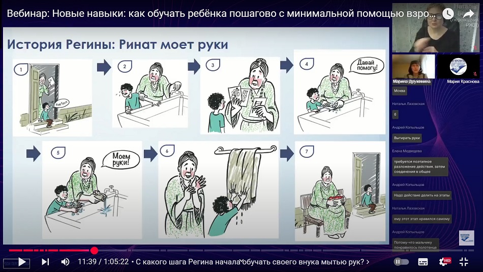 В ходе вебинара участники разобрали ключевые принципы эффективного обучения детей для освоения новых навыков самостоятельного поведения в рамках повседневных ситуаций.