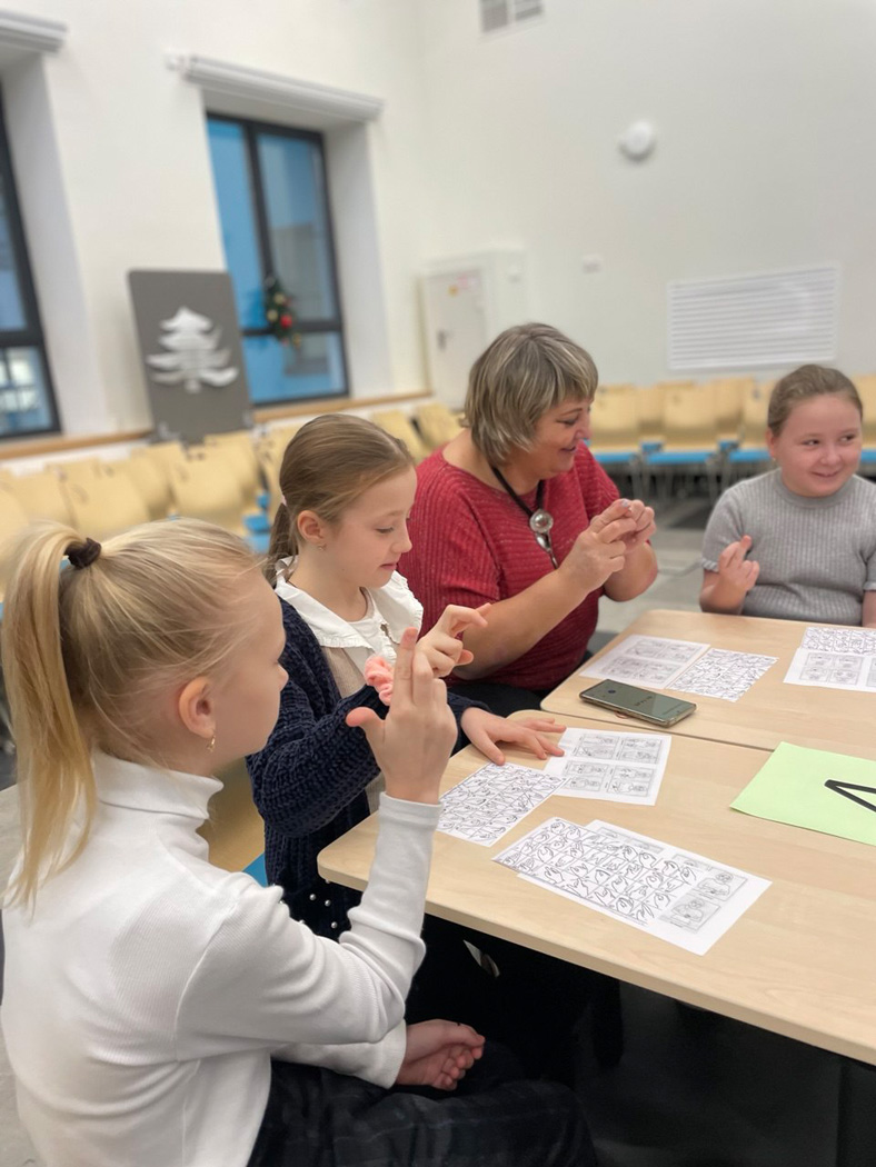 - Жестовый язык. Это занятие помогло детям окунуться в мир неслышащих людей. Школьники узнали многое о жестовом языке и даже выучили на нём несколько выражений.