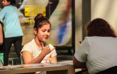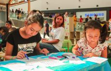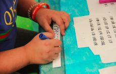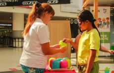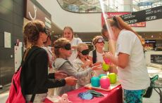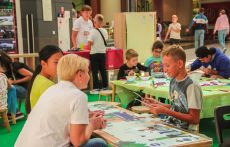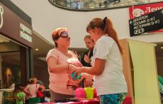 На площадке детского клуба МЕГА Белая Дача разместились сразу несколько творческих станций: на одной из них дети постигали основы жестового языка, учились показывать буквы алфавита и простые слова, а потом с помощью жестов составляли небольшие рассказы. На другой – знакомились с необычной азбукой – Брайля. Сложное, на первый взгляд, задание – «перевести» слово со шрифта Брайля и написать его буквами обычного алфавита в итоге получалось у всех – и у больших, и у маленьких.