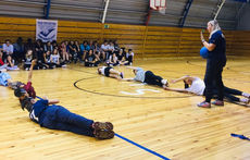 В конце состоялся мини-турнир по голболу: школьники посоревновались сначала со своими сверстниками, а затем с командой учителей. В специальных светонепроницаемых очках, ориентируясь только на слух, игроки пытались поймать мяч со встроенным колокольчиком внутри, чтобы не пропустить гол.