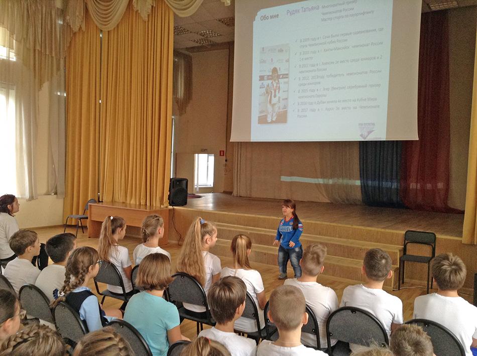 Приседания, жим лежа и отрыв штанги от помоста – очередной «День параспорта» прошел в московской школе № 1412. Наш сотрудник и многократный призер чемпионатов России и серебряный призер чемпионата Европы по пауэрлифтингу Татьяна Рудяк рассказала о происхождении этого спорта и о том, как сама пришла в тяжелую атлетику. Таня показала ребятам видео с соревнований и провела мастер-класс и разминочную тренировку в спортзале.