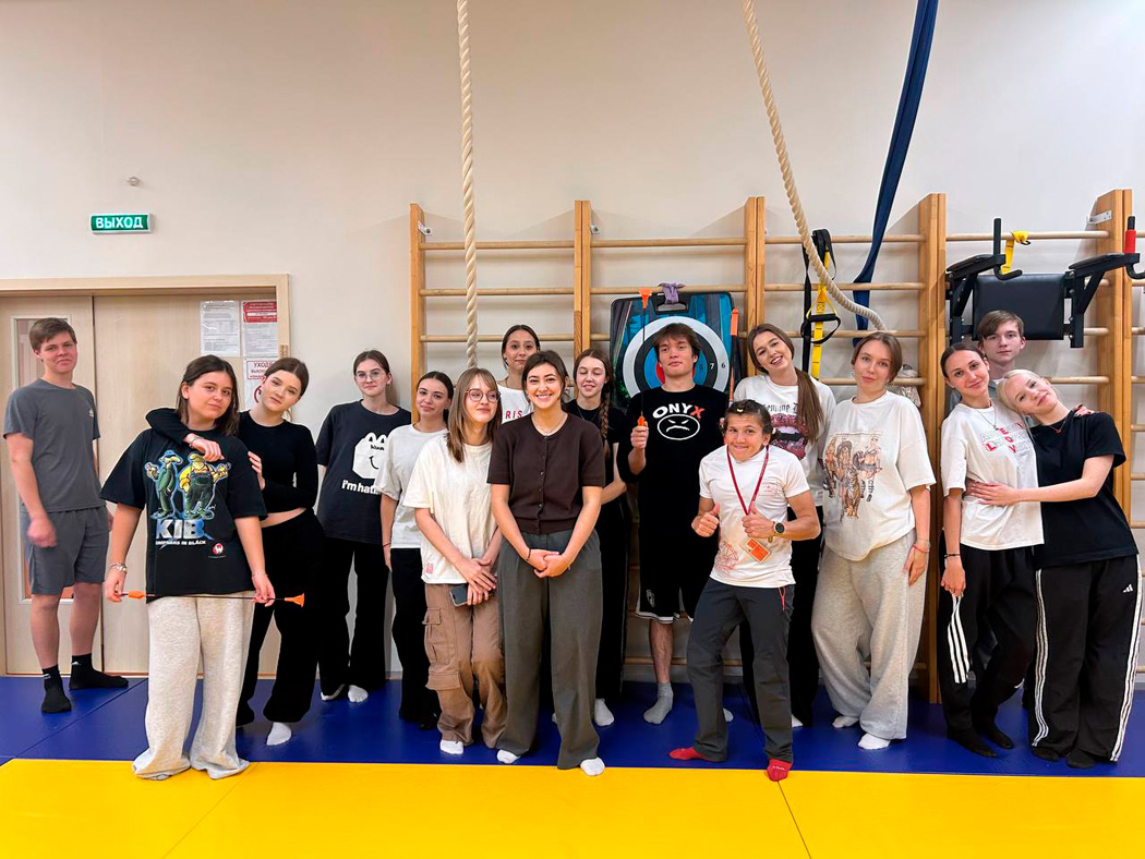 После тренировок школьники разделились на команды и приняли участие в увлекательных турнирах, где смогли применить новые навыки. Однако на этом сюрпризы не закончились. В ответ на мастер-класс ученики организовали для Анны показательный урок по фехтованию на мягких мечах — дисциплине, которую они сами активно осваивают.