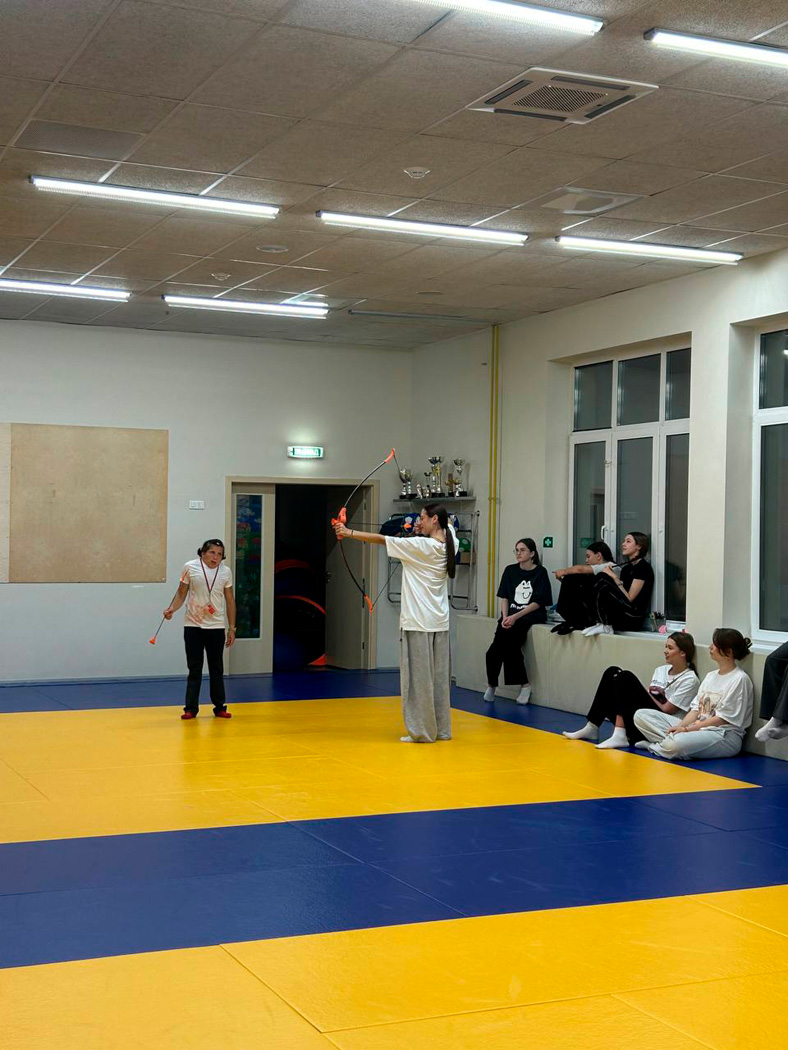 После тренировок школьники разделились на команды и приняли участие в увлекательных турнирах, где смогли применить новые навыки. Однако на этом сюрпризы не закончились. В ответ на мастер-класс ученики организовали для Анны показательный урок по фехтованию на мягких мечах — дисциплине, которую они сами активно осваивают.