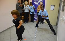 Двухчасовое занятие состояло из разминки, ходьбы, растяжки. Преподаватели рассказали, что такое Double Dutch, продемонстрировали несколько трюков, а затем провели обучение «the bunny hop» — так называемому базовому шагу нового спортивного стиля.