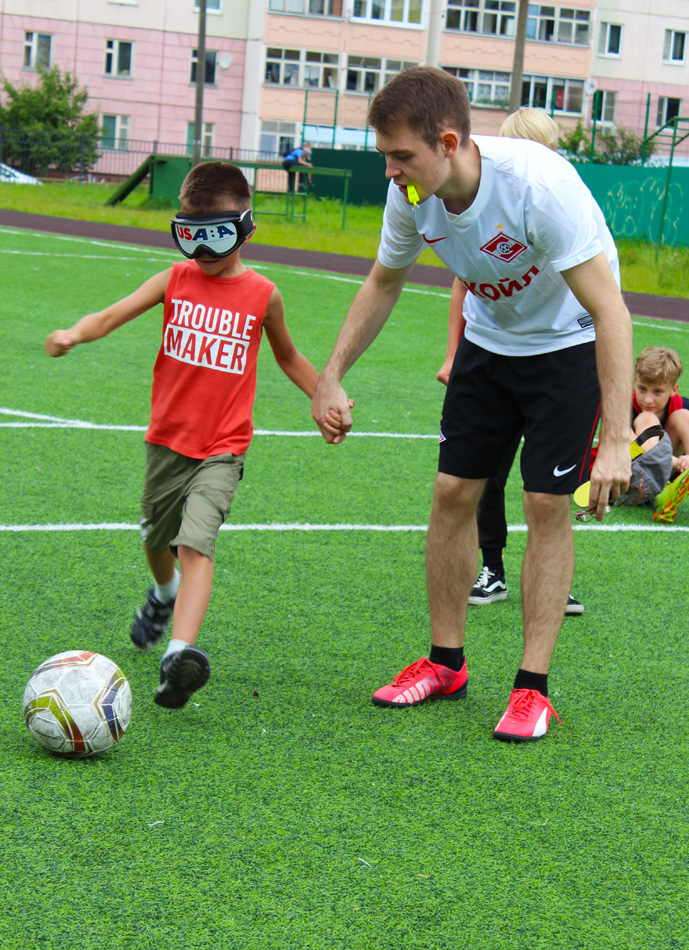 В разгар школьных каникул в летнем лагере лицея №21 в Сходне прошел мастер-класс по футболу для незрячих.