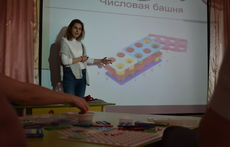 «Нумикон» – программа для обучения детей с нарушением развития интеллекта математике. Елизавета Сладкова, педагог-дефектолог Благотворительного фонда «Даунсайд Ап» показала педагогам набор цветных пластмассовых форм-шаблонов для занятий по «нумикону», и объяснила, что этот наглядный материал делает числа с доступными для зрительного и тактильного восприятия ребенка.