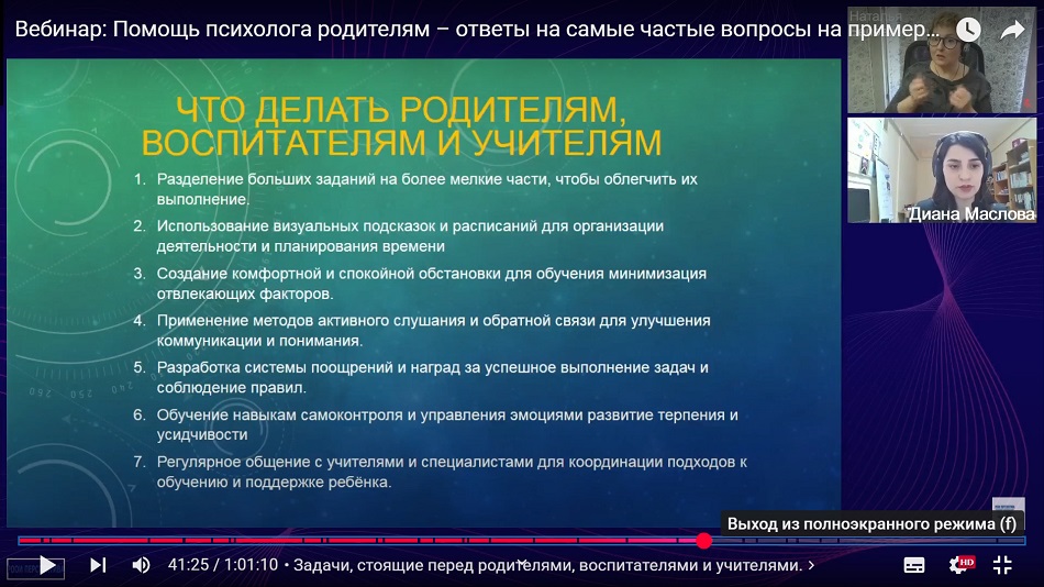 «Диана Султановна дала конкретные практические рекомендации, которые родители смогут применять в повседневной жизни, а также привела примеры из собственной практики и пути решения таких ситуаций. Формат вебинара позволил участникам задать вопросы в прямом эфире и получить на них компетентные ответы эксперта».