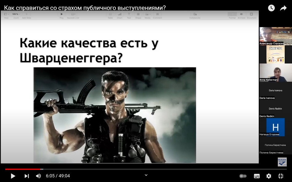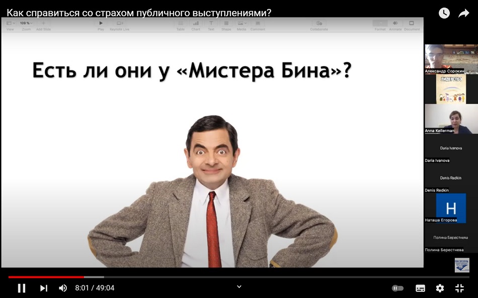 На вебинаре Анна рассказала, как в самом начале своего карьерного пути она преодолевала страх выступлений и как сейчас помогает другим. Кроме того, Анна поделилась своими идеями относительно причин страха публичных выступлений.