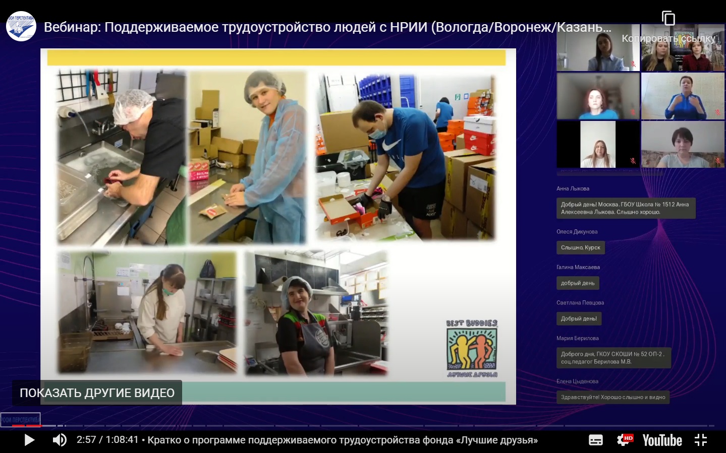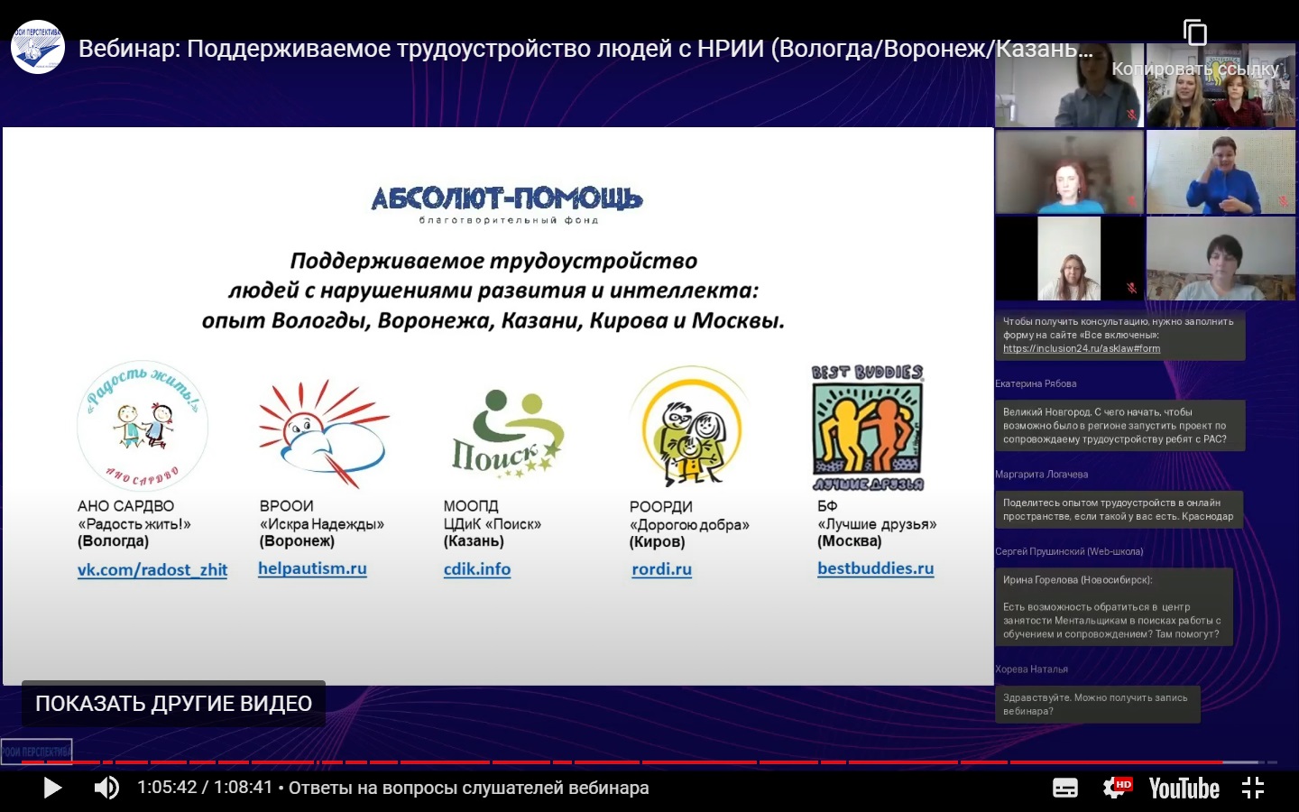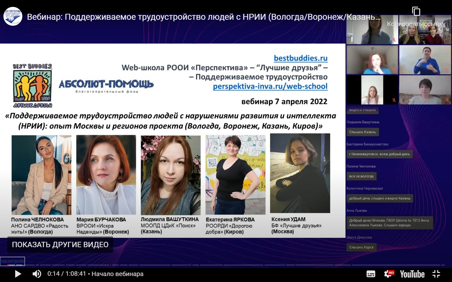 Вебинар проведён в рамках проекта БФ «Лучшие друзья» «К независимой жизни: реализация программ по социализации и трудоустройству людей с НРИИ в Москве и 4 регионах России» (при поддержке Благотворительного фонда «Абсолют-помощь»)