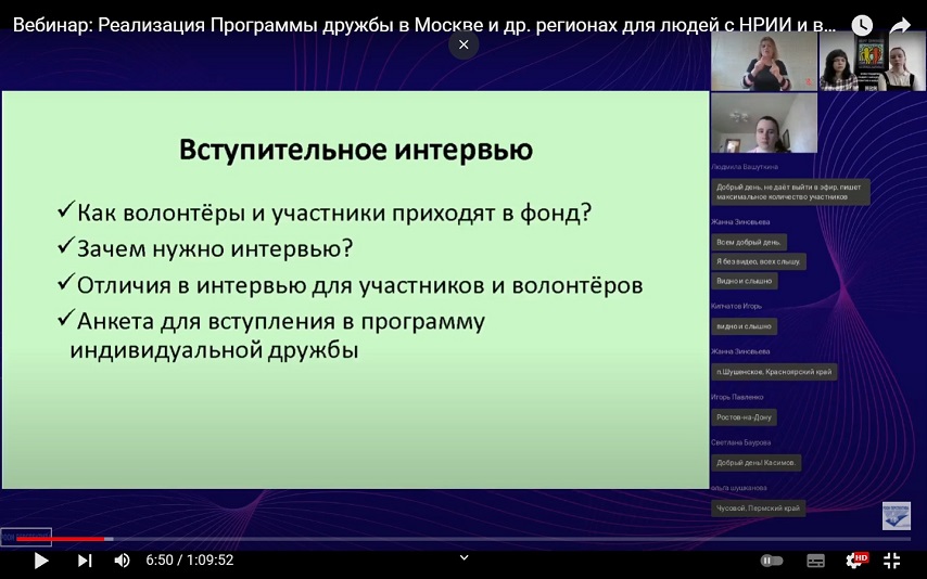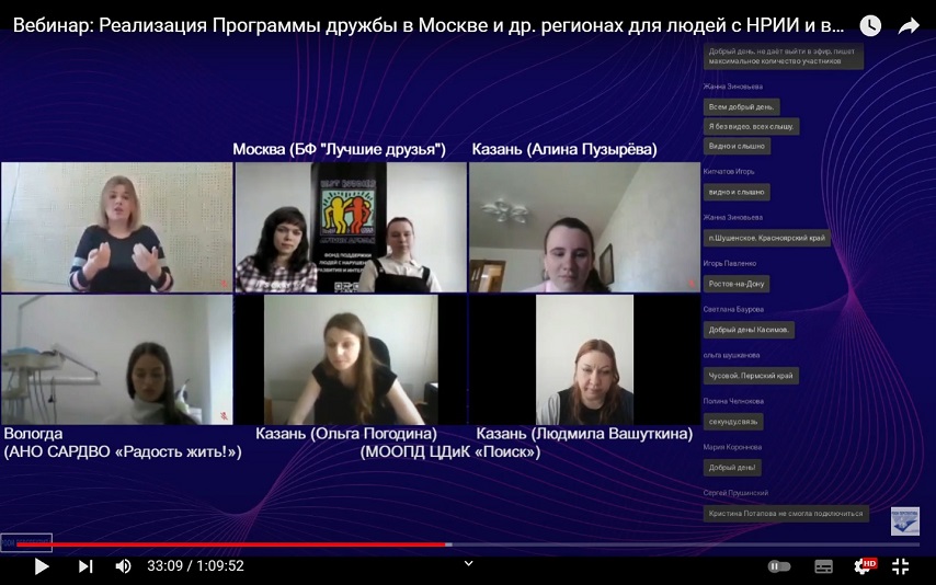 Нашими большими успехами и маленькими трудностями, возникающими на пути по развитию программы дружбы, мы с удовольствием поделились на прошедшем вебинаре. Было невероятно интересно услышать об опыте существования программы в других регионах, истории её участников, волонтёров. И, как говорится, вся соль в вопросах, а вопросы экспертам со стороны слушателей говорят о высоком интересе к развитию данной программы в разных регионах страны».