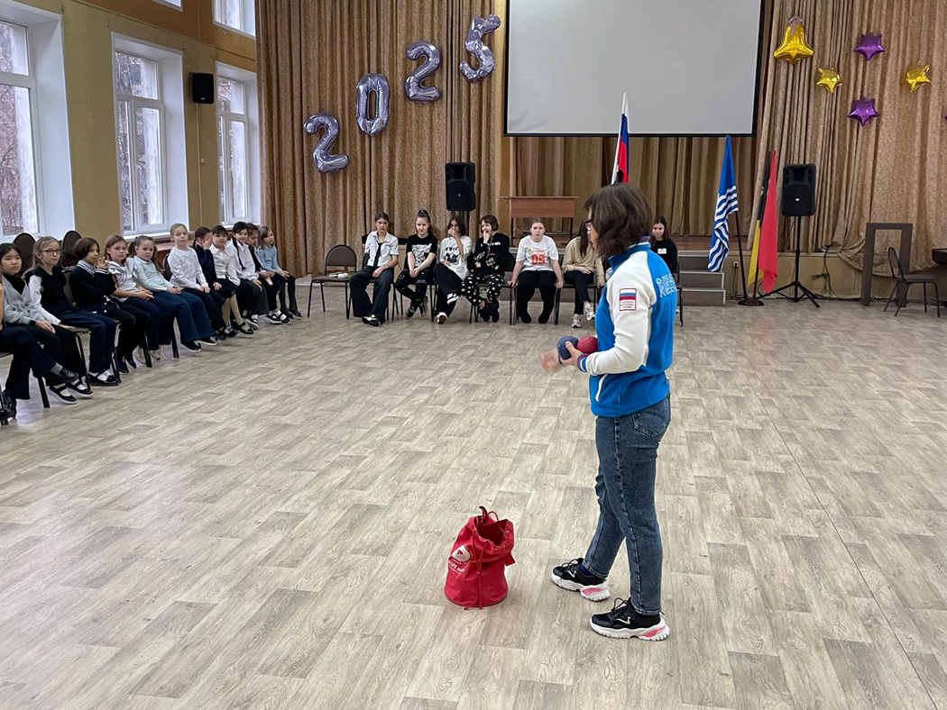 После теоретической части школьники сразу перешли к практике. Разделившись на команды «красных» и «синих», они сделали пробные броски, а затем с азартом включились в игру. Удивительно, но ребята не просто бросали мячи, а быстро начали применять собственные тактические ходы, пытаясь вытеснить мяч соперника и приблизить свой –целевому мячу. За время мастер-класса удалось провести несколько напряженных и веселых партий.