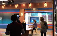 Сотрудник телеканала Светлана Романова провела экскурсию, показала ребятам офис, отделы компании, аппаратную прямого эфира, гримерку и студию, подробно отвечала на вопросы всех участников.