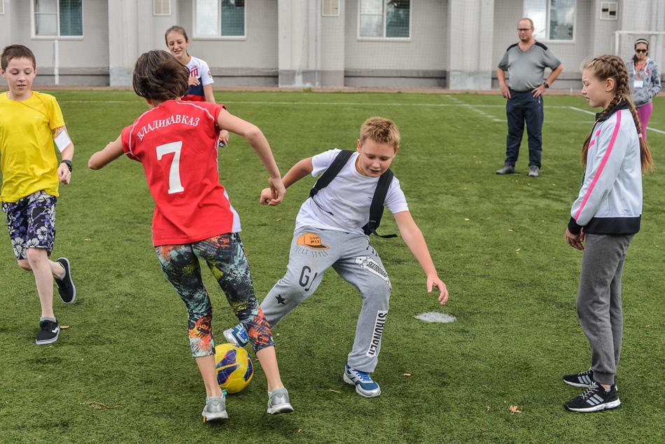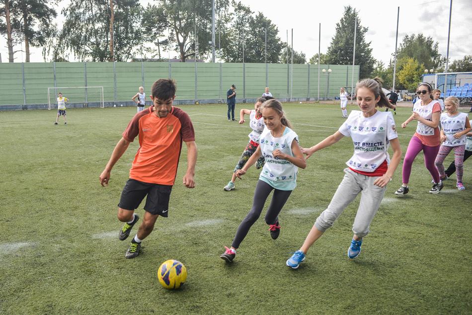 Чтобы снизить накал спортивных страстей, ребятам устаривались товарищеские встречи по футболу. Одним из таких стал матч между командой детей и командой организаторов, сопровождающих и специальных приглашенных футболистов из команды К11. Кстати, футболисты из К11 перед игрой провели полноценную футбольную тренировку для всех желающих и научили некоторым приемам владения мячом. Ребята, настолько вжились в роль профессиональных футболистов и не хотели отдавать победу взрослым! Итог игры – ничья.