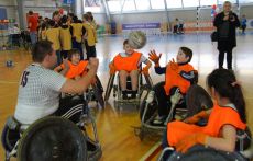 Ребята также научились баскетболу на колясках с помощью команды игроков в баскетбол на колясках МБА, или «Планета колец», во главе с замечательным спортсменом – Федором Юрку. С удовольствием кидали цветные шарики бочча – как это делать, показали сотрудники РООИ «Перспектива» Юрий Каменец и Татьяна Рудяк. Очень переживали, что не всем удастся нанести сопернику укол настоящей шпагой – ведь время ограничено, а нужно еще надеть специальный шлем… С азартом поиграли в регби на колясках и в футбол для незрячих. И совсем никому не хотелось уходить со станции волейбола сидя, мастер-класс по которому провела чемпионка Владимирской области по волейболу Дарья Федорович. Правила, казалось бы, просты, игра не требует усилий, зато комфортно всем без исключения – даже самый слабый физически игрок отбивает мяч и чувствует себя включенным в общий круг.