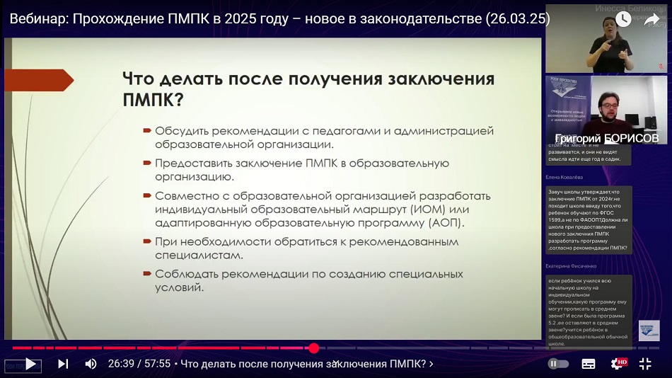 Юрист Григорий Борисов, специализирующийся на вопросах инклюзивного образования, подробно рассмотрел ключевые юридические аспекты прохождения психолого-медико-педагогической комиссии (ПМПК) в 2025 году – смотрите запись вебинара 26 марта.