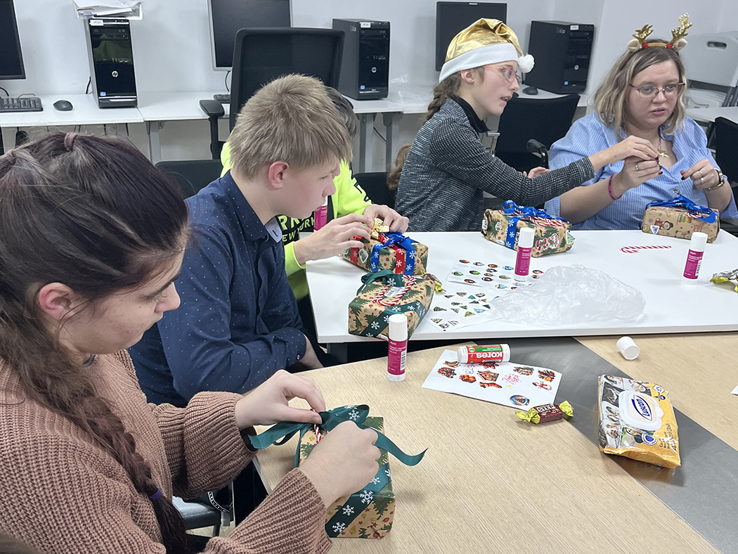 25 декабря 2025 года в РООИ «Перспектива» прошел тематический День наставника, посвященный профессии упаковщика. Мероприятие объединило подростков с разными формами инвалидности: под руководством специалистов они создали уникальные новогодние композиции и освоили искусство оформления подарков.