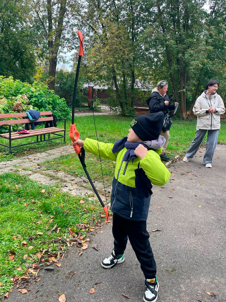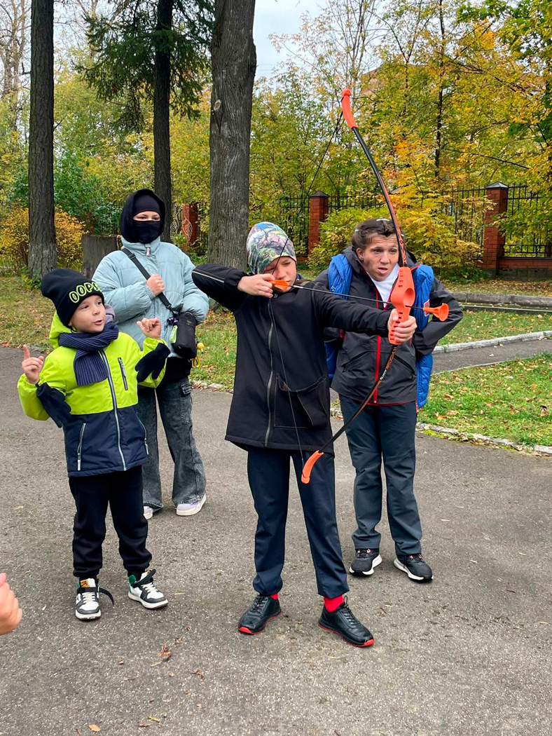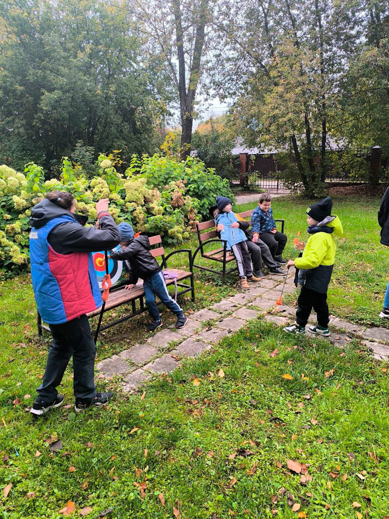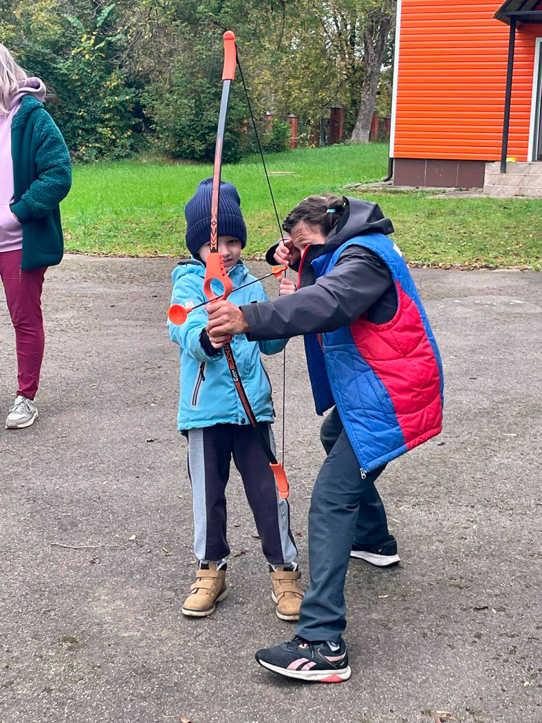 Ни участники, ни организаторы не испугались пасмурной осенней непогоды. Дети и их родители с нетерпением ждали этой встречи, поэтому, тепло одевшись, все с энтузиазмом вышли на свежий воздух, чтобы активно и с пользой провести время. Анна подробно объяснила основы техники безопасности, наглядно продемонстрировала, как правильно обращаться с луком, — и занятие закипело.