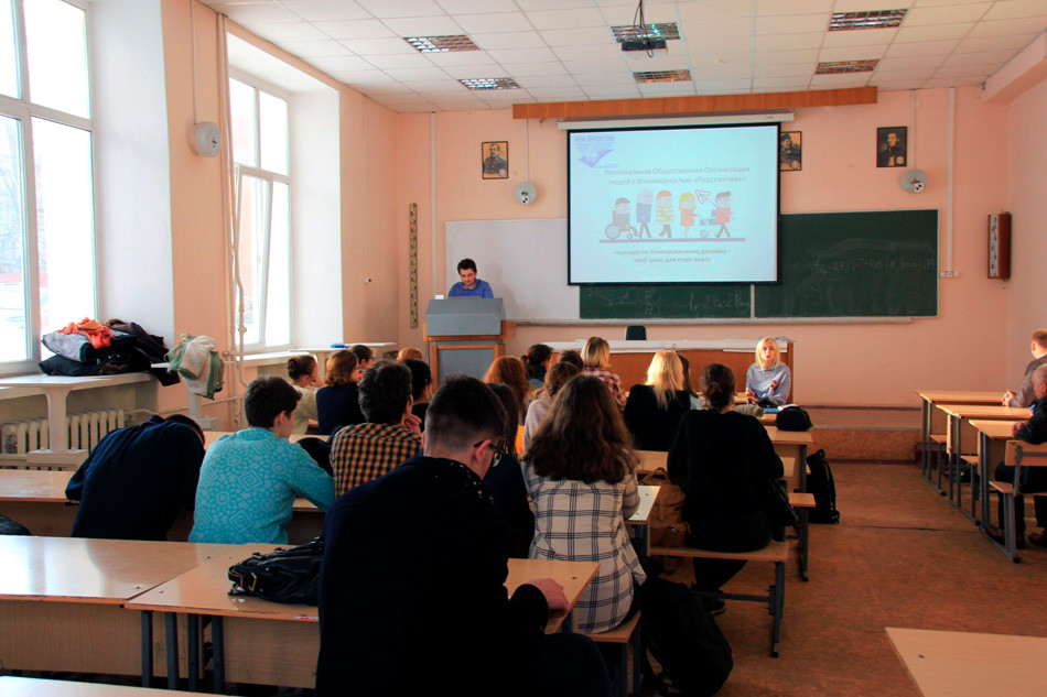 В конце своего выступления Мария рассказала о Всероссийском архитектурном конкурсе «Универсальный дизайн», который уже третий год проводит РООИ «Перспектива». Эксперт пригласила студентов также принять участие в конкурсе и придумать свой дизайн, ломающий барьеры. Мария подчеркнула: к участию принимаются не проекты зданий и предметов, специально адаптированных для людей с инвалидностью, а примеры универсального дизайна – такого устройства мира, которое удобно всем – и ребенку, и пенсионеру, и человеку с инвалидностью.