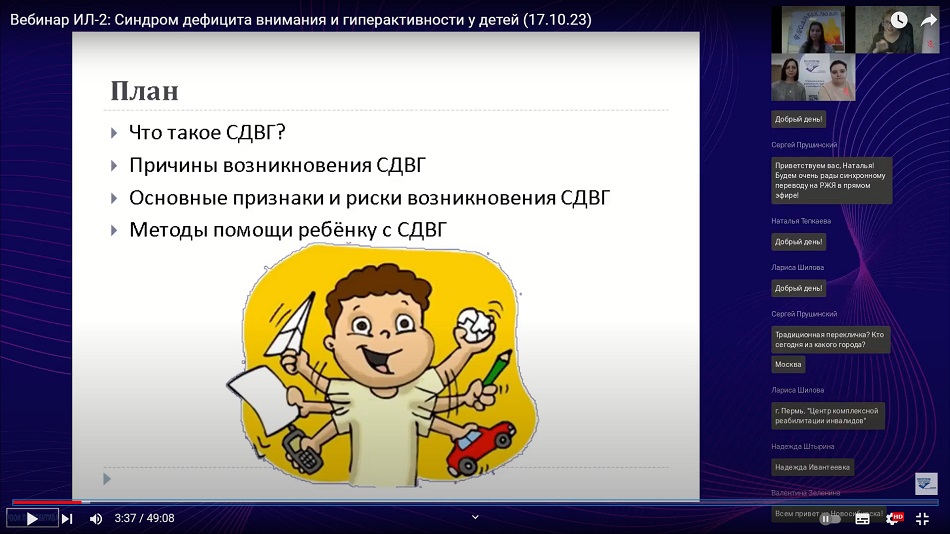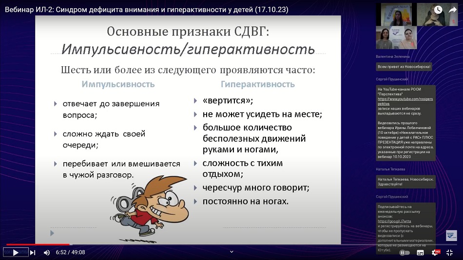 Психолог, ведущая “Школы родителей с особым ребёнком” Ирина Владимировна Лобанчикова озвучивает основные вопросы о СДВГ: понятие, признаки и причины возникновения, варианты помощи.