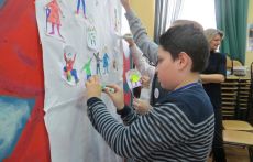 «Ребята, у нас на стенде пока только один человечек на коляске. Давайте окружим его друзьями, чтобы он не скучал и не чувствовал себя одиноко!» – объявила куратор станции рисованных человечков, ведущая Уроков доброты Анна Котова. И вскоре стенд «заселили» разноцветные фигурки – на колясках и без, в очках и с тросточками, «бледнолицые» и чернокожие… Одну из фигурок на колясках даже приклеили вверх ногами – ведь люди с инвалидностью тоже могут демонстрировать головокружительный фристайл! Получился забавный красочный коллаж – символ равенства всех людей на планете.