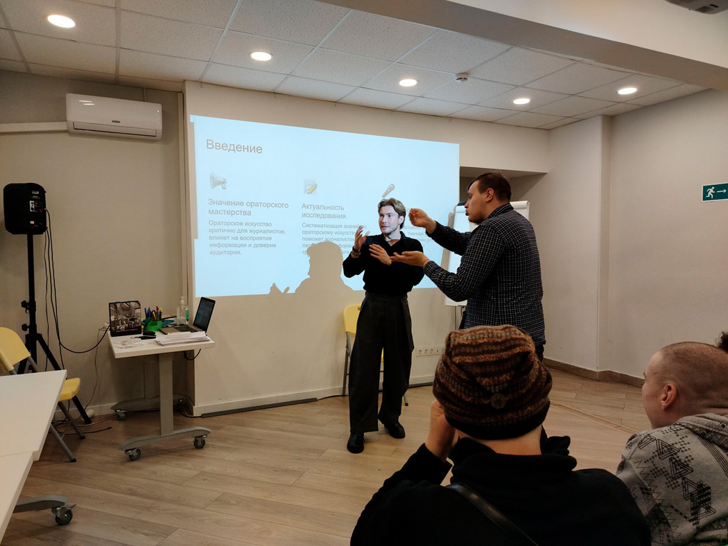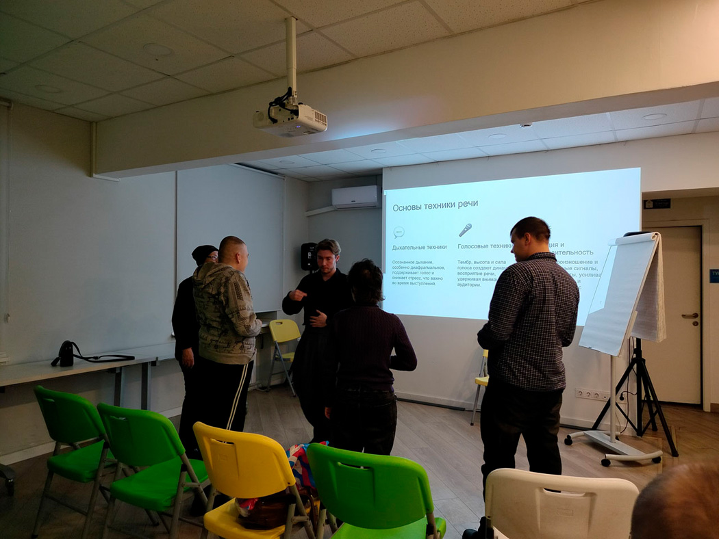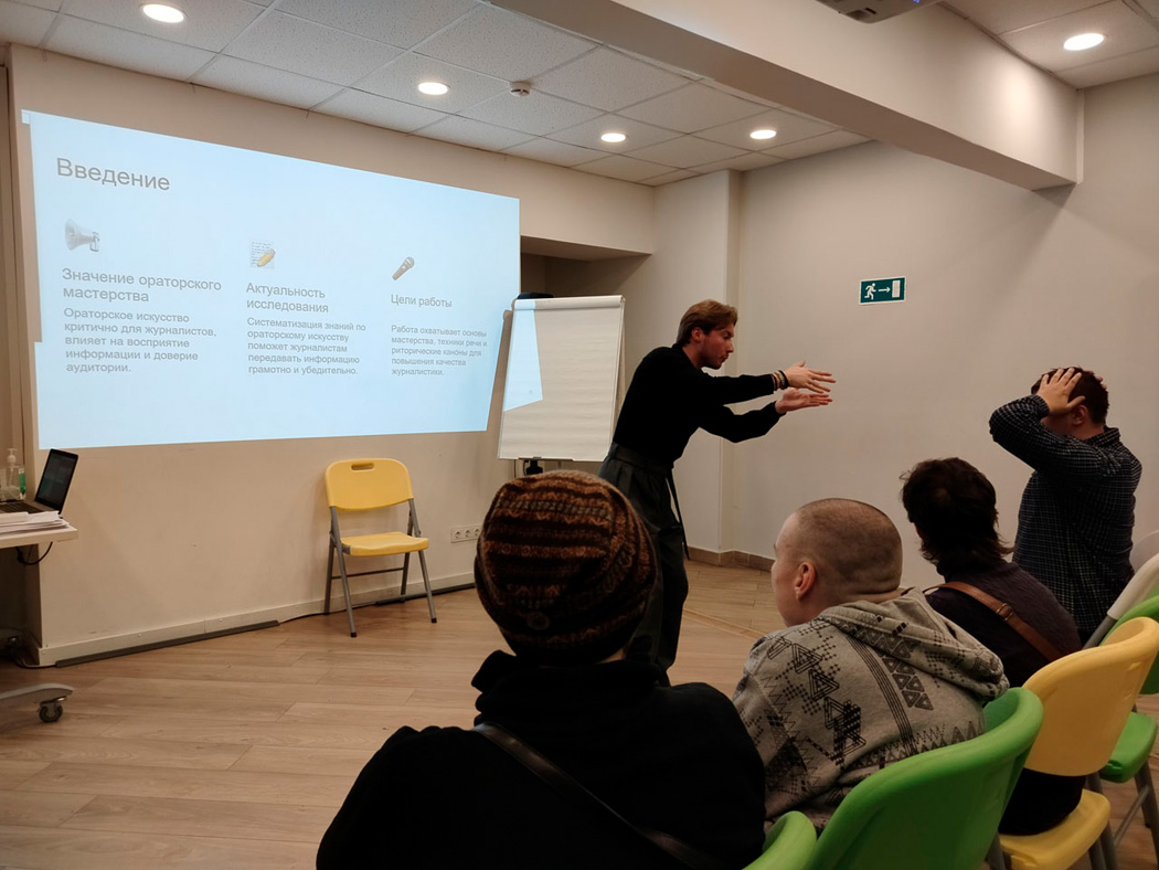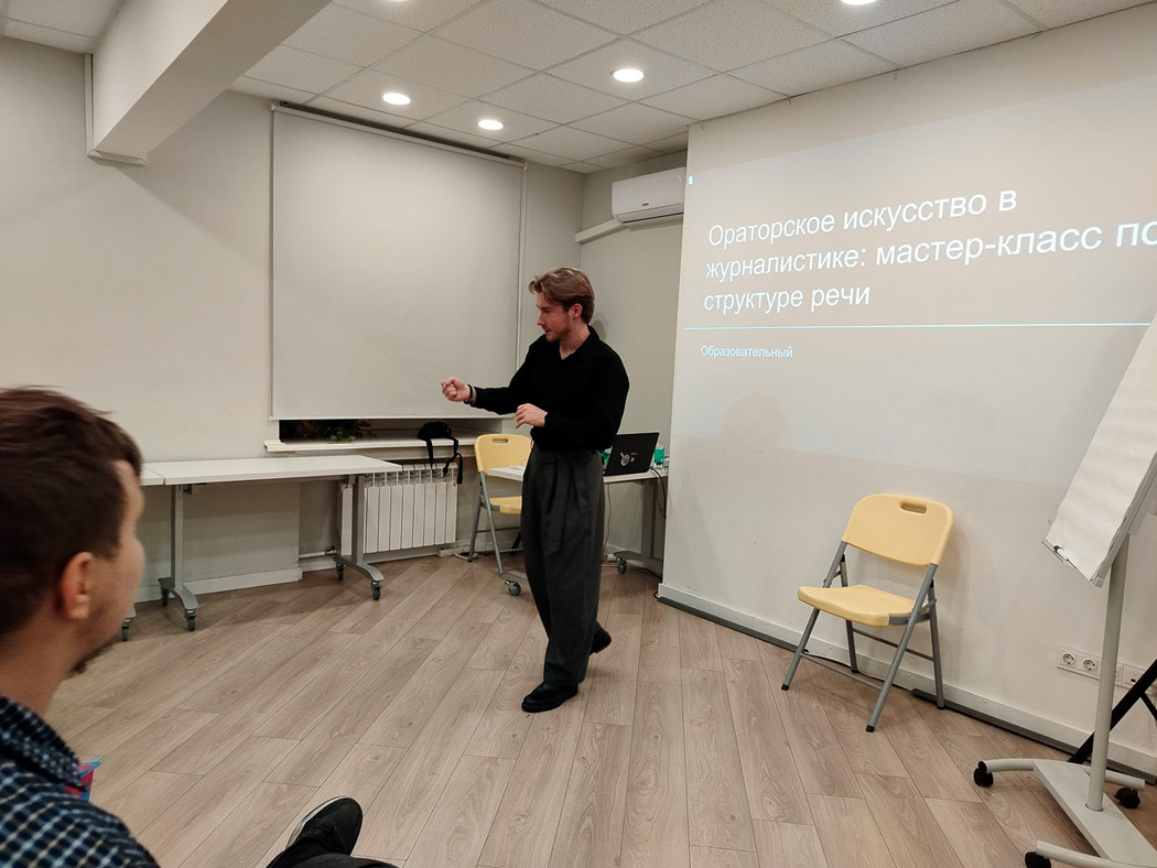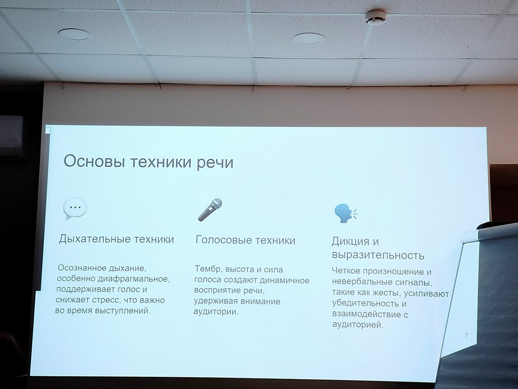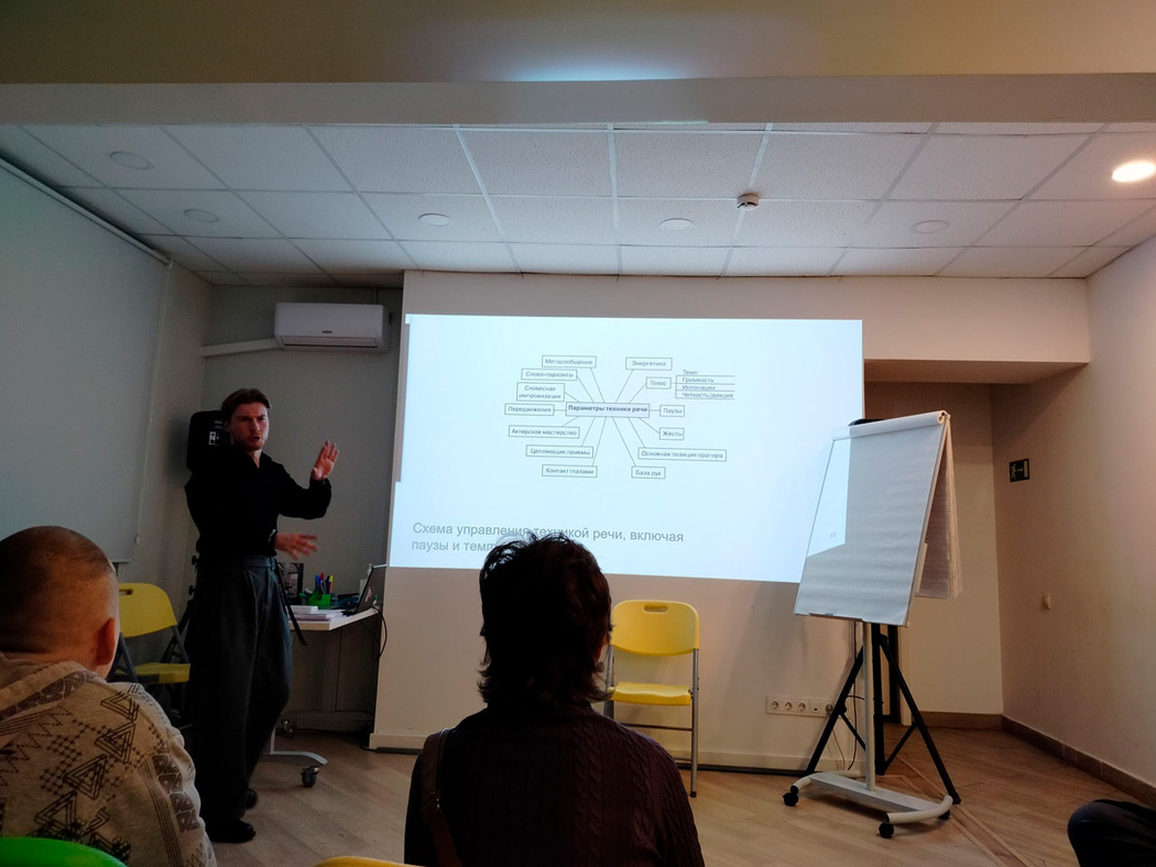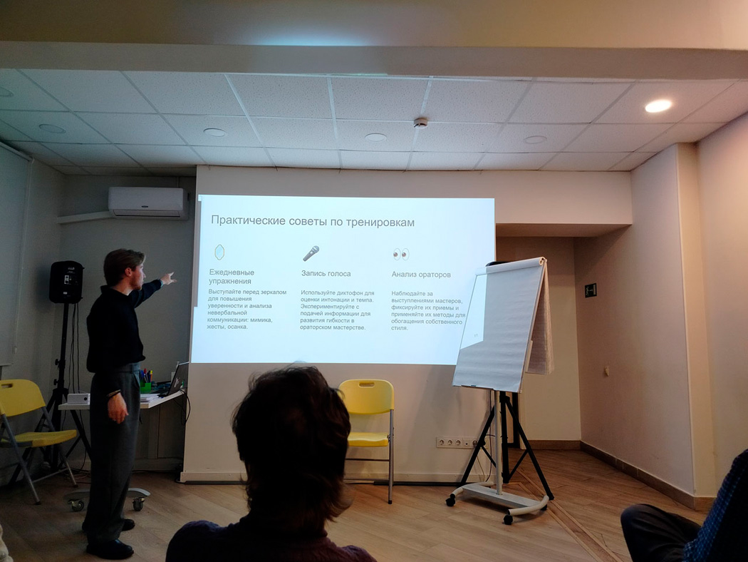 Особое внимание Артём Смирнов уделил управлению темпом и паузами для ясного и убедительного донесения информации. Он также дал практические советы по развитию уверенности в себе, постановке голоса и анализу обстановки во время выступления.