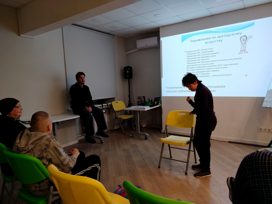 - освоили техники для структурирования речи, а также дыхательные, голосовые упражнения и приёмы работы с мимикой и жестами.