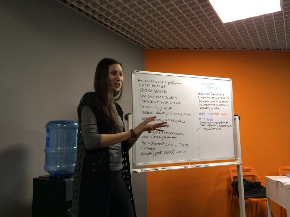Целью семинара была подготовка сотрудников компаний к приему на работу сотрудников с инвалидностью на всех стадиях: от проведения собеседования до постоянной совместной деятельности в рабочем процессе.