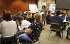 Затем тренер дала задание ребятам – в течение 15 минут, в режиме «броуновского движения», узнать об интересах друг друга и на основе полученной информации придумать и провести презентацию продукта или услуги так, чтобы это заинтересовало всех.