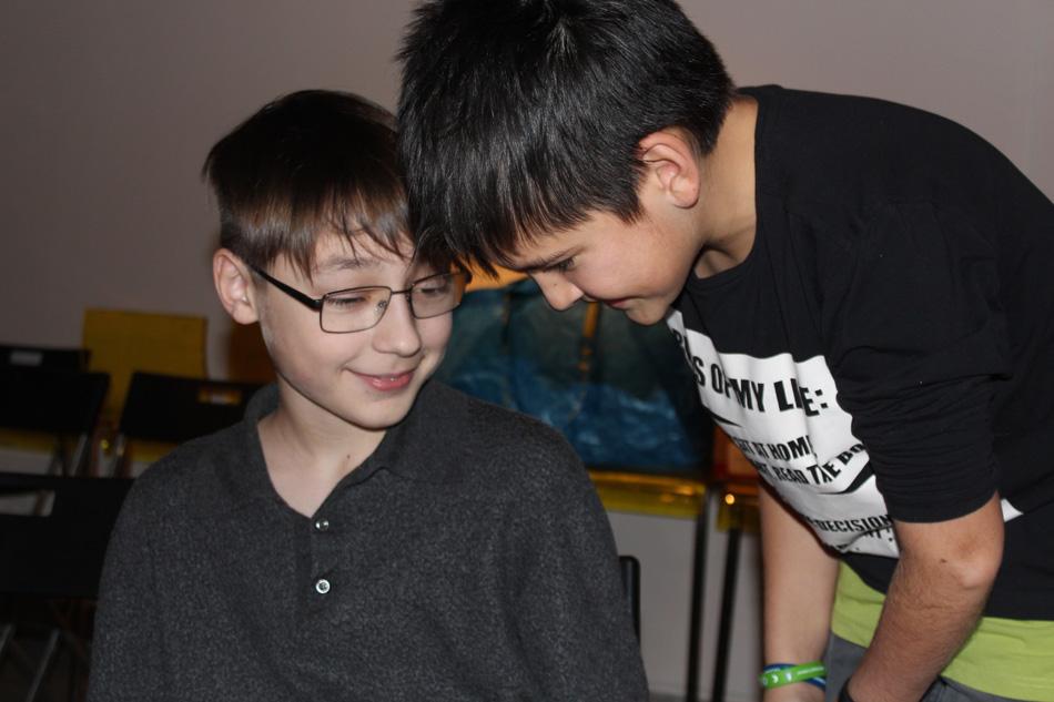 Затем перешли к практике: под руководством монтажера канала Павла Хомина ребята попробовали сделать заставку к видео. Автором идеи выступил Матвей Киселев – он мастерски нарисовал череп, а затем в специальной программе Adobe After Effects общими усилиями начали творить. Ребята подавали идеи – какой эффект добавить, каким цветом раскрасить глаза, а Павел воплощал это в жизнь. В итоге получилась устрашающая картинка – анимированный череп с горящими глазами, шевелящийся под музыку! Этот процесс очень затягивает, особенно людей с безграничной фантазией – ведь можно перенести в программу все свои задумки, она дает возможность профессионально монтировать и создавать качественный продукт.