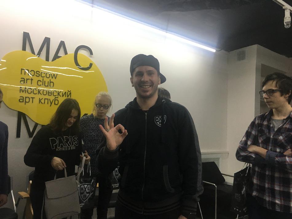 В начале встречи Ваня рассказал немного о себе: как в юности начал ходить на хоккей, а в дальнейшем связал свою жизнь с «околохоккейной» сферой. Чтобы ребята увидели, что такое хоккейный блог, Ваня показал авторское видео «Кто хочет стать болельщиком?», в котором задавал прохожим вопросы о хоккее, а самым осведомленным — вручал призы. Во время просмотра некоторые ребята так же удачно отвечали на вопросы из видео, что, несомненно, порадовало Ивана. Этот ролик не только познакомил слушателей с популярным видом спорта, но и наглядно продемонстрировал, какой формат видео востребован в современном видеоблоге. А это – одна из главных задач наших обучающих встреч. Приятным сюрпризом стало вручение подарков от Atributika&Club, которые Иван приготовил для участников Школы блогера.