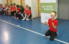 Ведущие Татьяна и Алексей Бобровские разделили спортзал на две половины: в одной устроили площадку для бочча, в другой – для голбола. Пока старшеклассники бросали разноцветные шары, стараясь выбить из центра шары противника, малыши пробовали свои силы в голболе, игре с мячом для незрячих спортсменов. Надев на глаза специальные маски, они внимательно слушали звенящий колокольчик внутри мяча и старались забросить мяч в ворота. А затем школьники поменялись площадками.