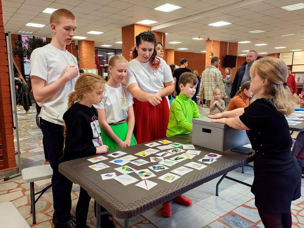 На этой площадке гости осваивали азы РЖЯ. Дети пробовали показывать базовые слова и целые фразы. Главным открытием стали принципы эффективного взаимодействия со слабослышащими людьми: как установить контакт и правильно донести сообщение до собеседника.
