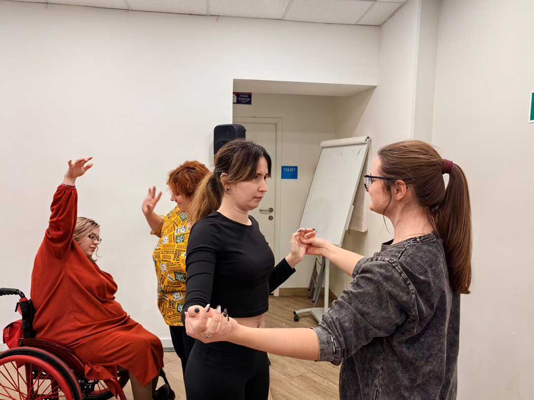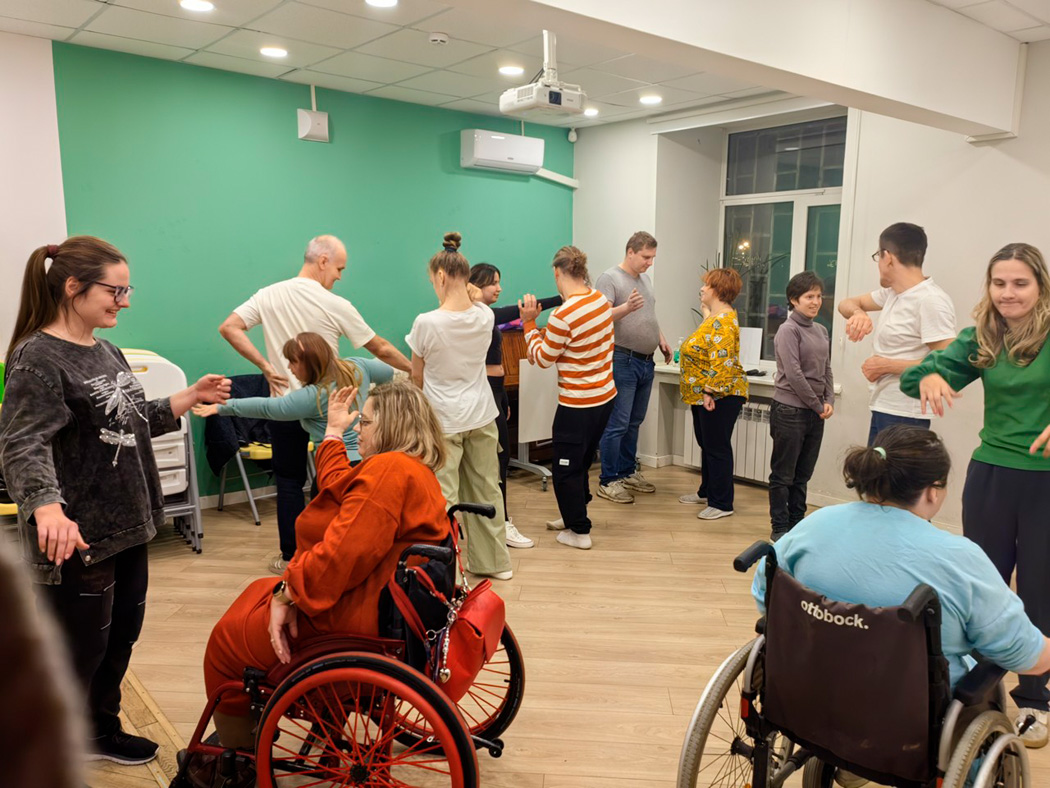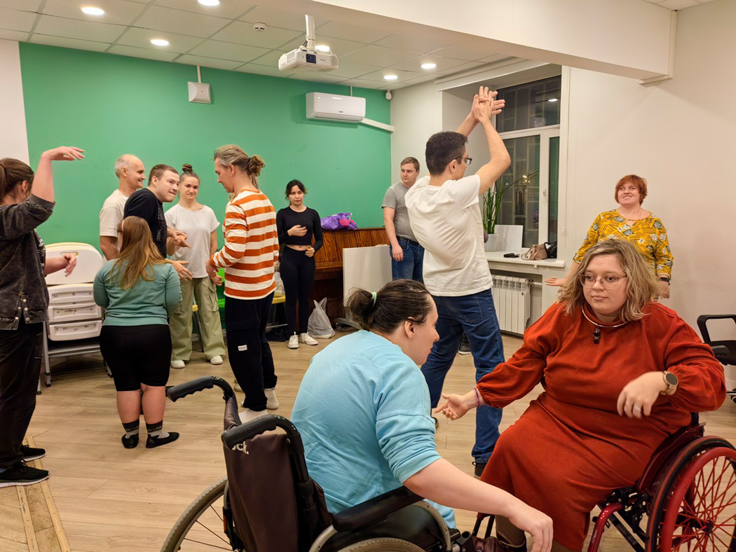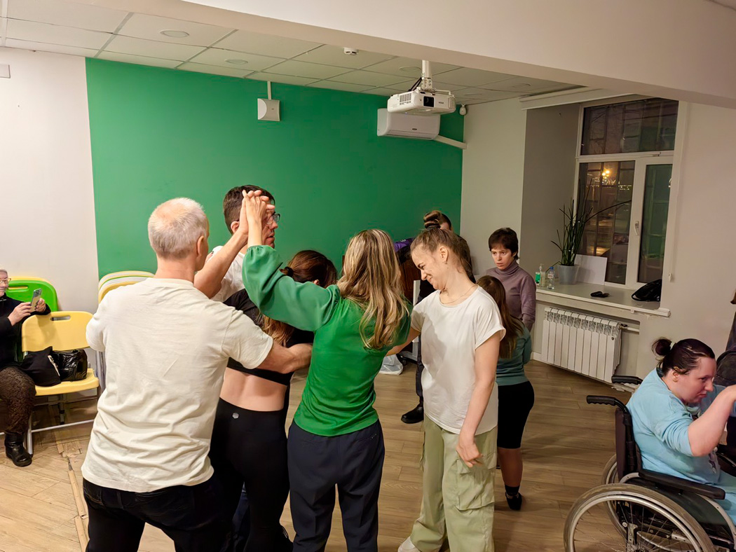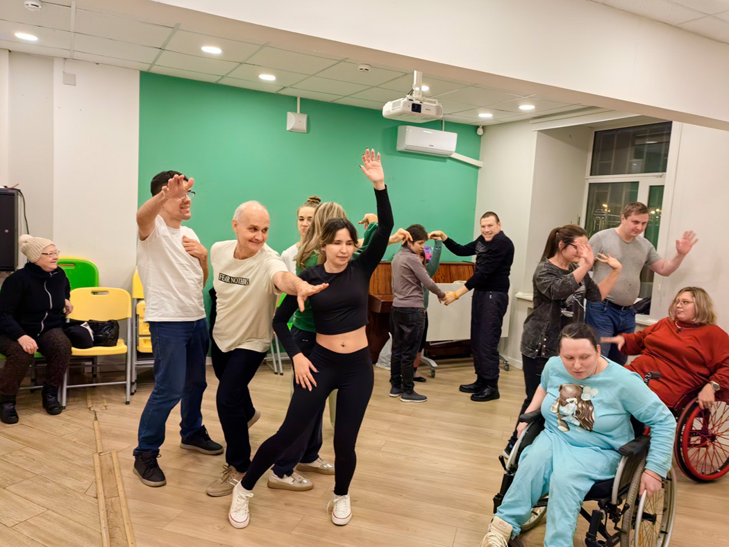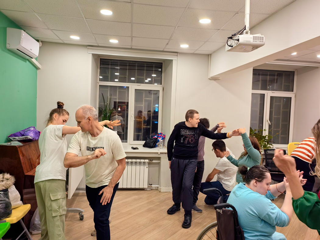 21 ноября в офисе РООИ «Перспектива» прошёл мастер-класс по танцевальной импровизации, организованный отделом по развитию лидерства при поддержке компании JTI Россия. Занятие, основанное на методе DanceAbility, показало, что танец является универсальным языком, доступным людям с различными физическими возможностями.