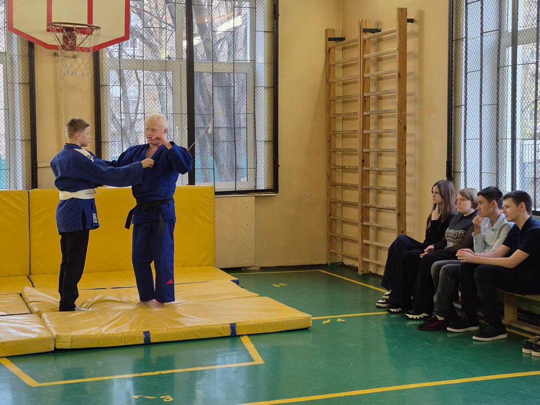 Затем действие переместилось в спортивный зал, где для гостей подготовили специальную площадку из матов. Настроение задал зажигательный танец, который подготовили учащиеся. После разминки под музыку началась самая зрелищная часть: дети смогли примерить кимоно, изучить основы единоборств и даже на собственном опыте почувствовать, как выполняется бросок через бедро. Мастер-класс подарил всем море положительных эмоций.