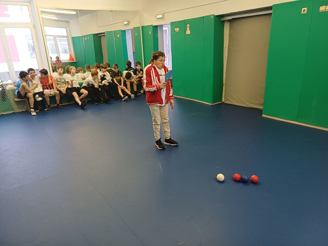 Ученики разных классов с большим интересом погрузились в правила и тактику игры. Бочча, изначально созданная для людей с нарушениями опорно-двигательного аппарата, оказалась увлекательным и сложным занятием для всех. Школьники учились рассчитывать силу и меткость броска, выстраивать коллективную игру и поддерживать друг друга. После вводной части от Анны школьники быстро освоились и с азартом провели свои первые учебные матчи.