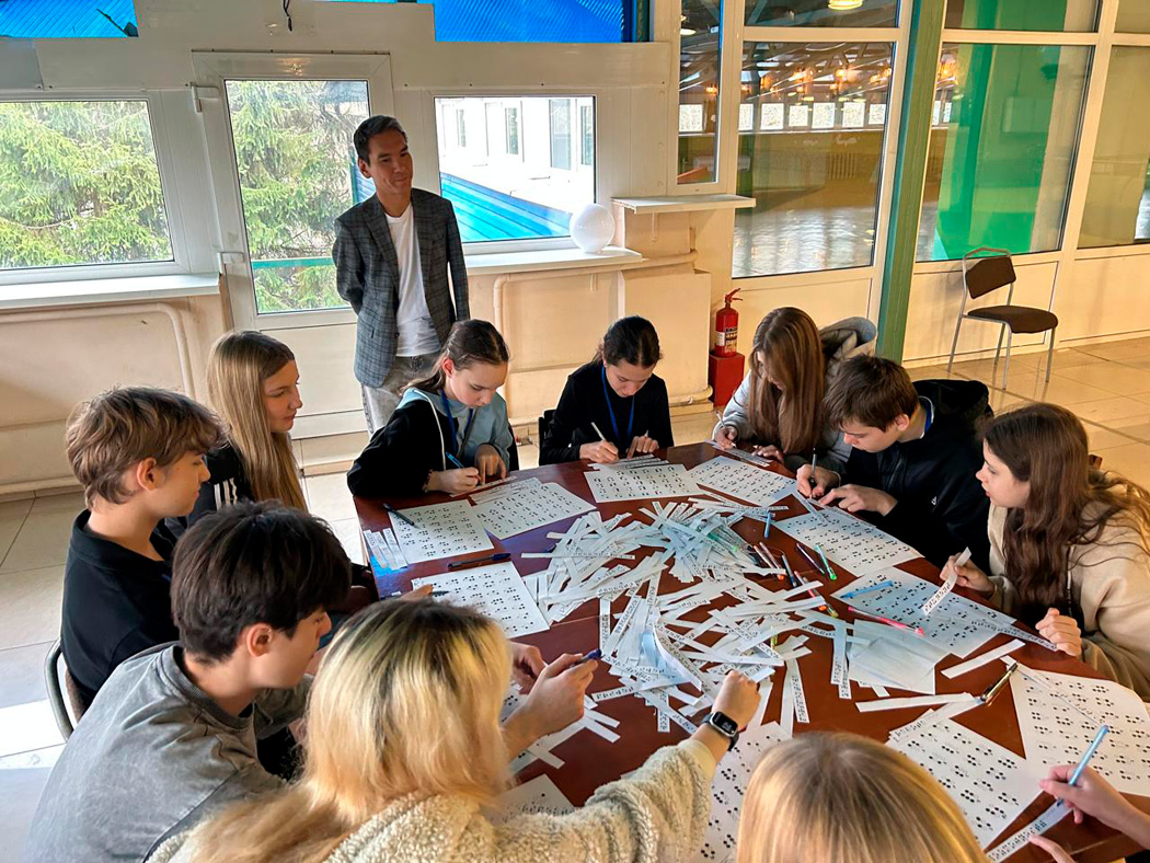 Здесь учащиеся изучали систему чтения, предназначенную для незрячих людей, и пробовали разгадывать специальные ребусы. Упражнения позволили детям на мгновение представить себя на месте человека с нарушением зрения и открыть для себя мир тактильного чтения.