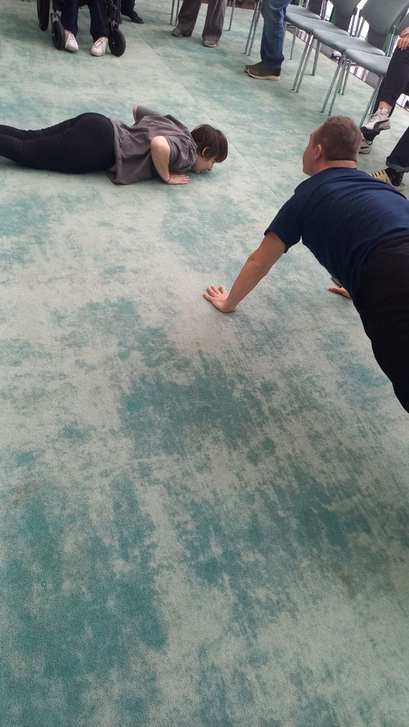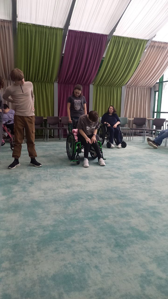 Каждое утро для ребят начиналось с бодрой зарядки — лучшего способа настроиться на рабочий лад. Вела занятия Анна Мыльникова, специалист спортивного отдела РООИ «Перспектива», входящая в состав сборной России по пауэрлифтингу, которая смогла сделать тренировку комфортной для всех участников, несмотря на разные формы инвалидности. После основной программы находились смельчаки, которые стремились к дополнительной нагрузке: отжимались и приседали, заряжая энергией остальных.