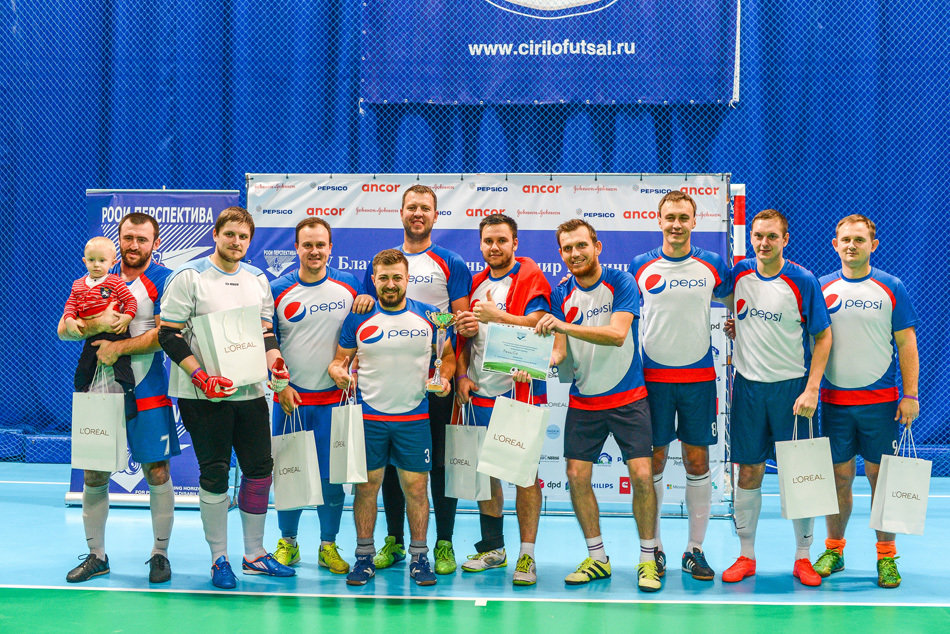 27 октября в спорткомплексе «Высшая лига» прошел очередной Благотворительный турнир по мини-футболу. В этом году пришло рекордное количество гостей, с самого утра площадка была заполнена игроками и болельщиками. В матчах турнира сыграли команды из PepsiCo, Johnson&Johnson, Ancor, Microsoft, Philip Morris, L’Oreal, Cummins, Coca-Cola HBC Russia.