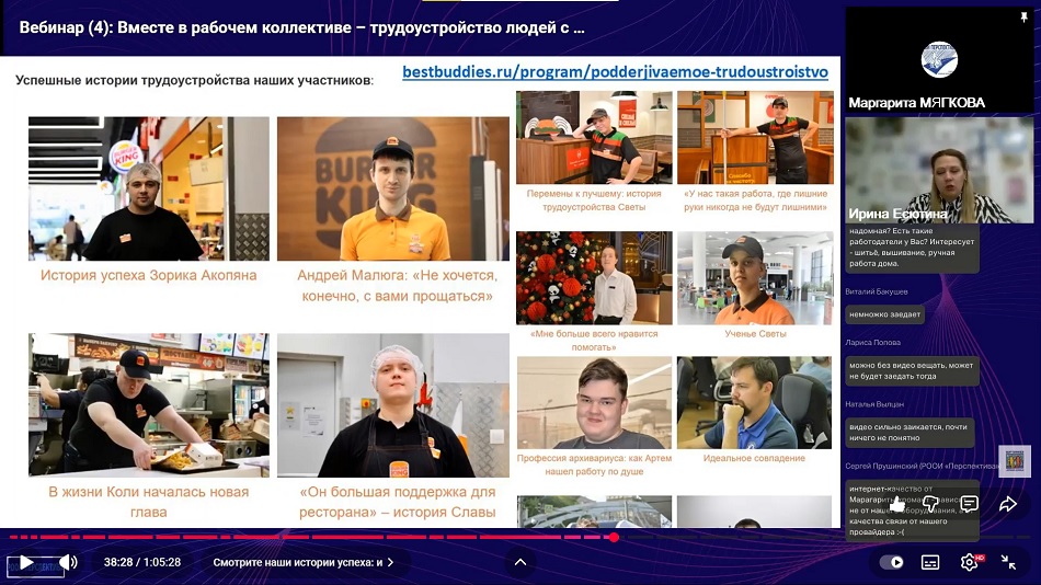 «В ходе нашего вебинара мы рассказали о том, как фонд «Лучшие друзья» уже более 10 лет успешно помогает людям с нарушениями развития и интеллекта находить свое место на открытом рынке труда. Мы обсудили каким образом осуществляется подготовка кандидатов, взаимодействие с работодателями и адаптация рабочих мест. Ответили на вопросы участников вебинара. До новых встреч!»