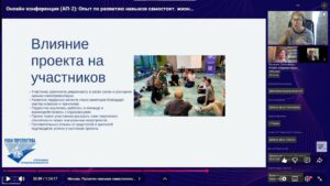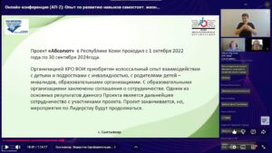 Специалисты из Москвы, Воронежа, Екатеринбурга, Самары и Сыктывкара делятся наработанными методиками и рассказывают о нововведениях в своих программах по развитию навыков самостоятельности и лидерства у подростков с инвалидностью – на второй межрегиональной онлайн-конференции для НКО и специалистов по итогам реализации проекта «Дети, подростки и молодёжь с инвалидностью: от уверенности в настоящем к успеху в будущем», реализуемого в 2022–2024 гг. при поддержке БФ «Абсолют-помощь».