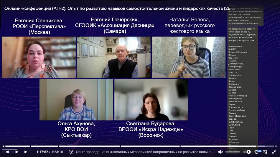Конференция под названием «Опыт проведения инклюзивных мероприятий, направленных на развитие навыков самостоятельной жизни и лидерских качеств у подростков с инвалидностью в Москве и регионах – успехи и сложности» собрала представителей НКО из пяти российских регионов.