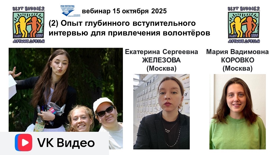 Зачем и как проводить глубинное вступительное интервью для волонтёров? Специалисты Фонда «Лучшие друзья» обсудили это 15 октября – на втором вебинаре программы о социализации и трудоустройстве людей с нарушениями развития и интеллекта (НРИИ).